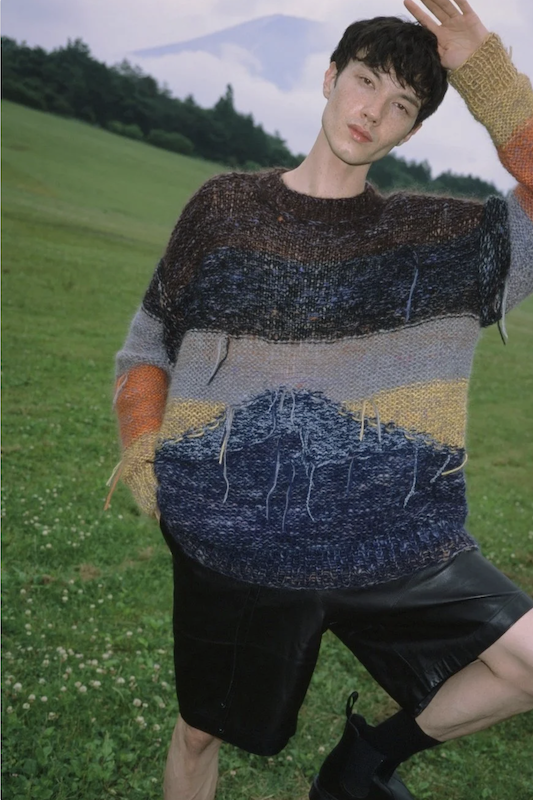 Because so many personal aspects of the designer are strongly reflected in the knitwear, a singular world that exists only in Kota Gushiken is knitted into each piece.