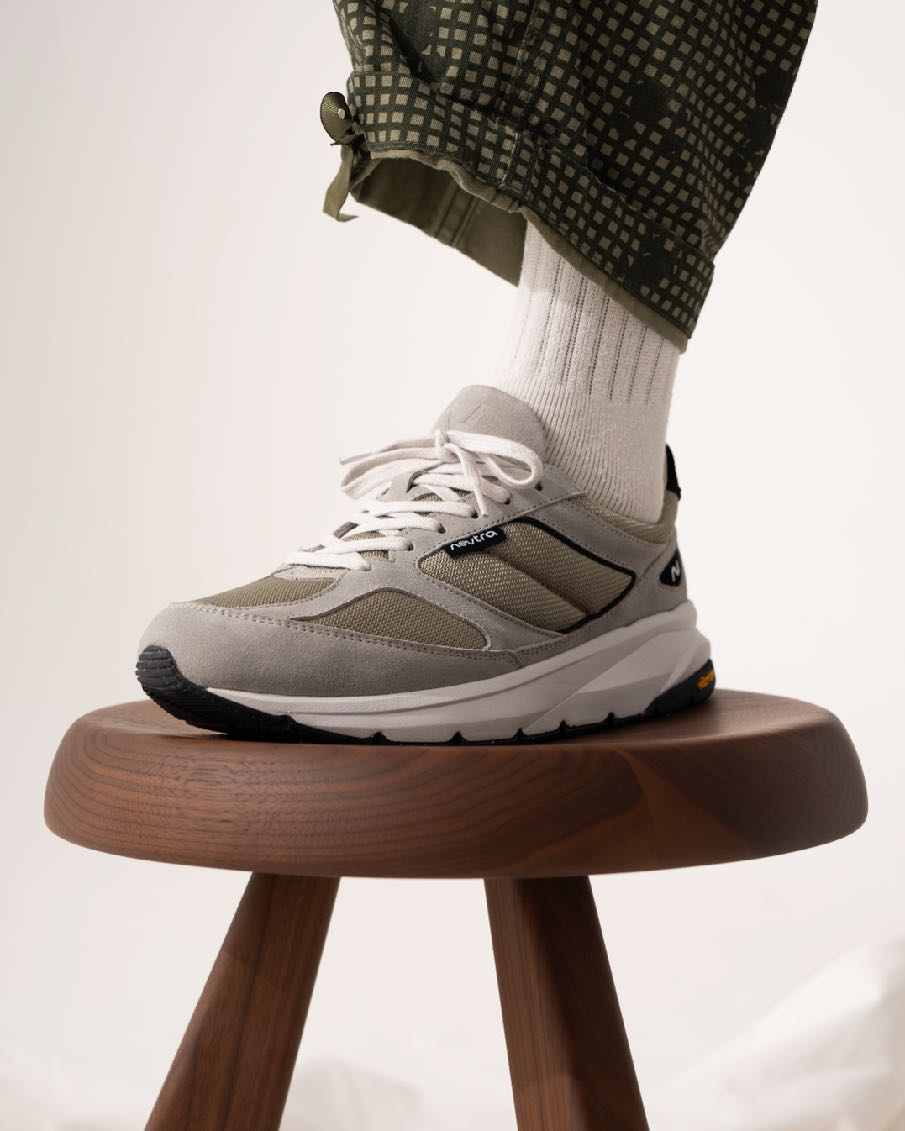 To give concrete form to this last, Neutra builds the upper on a foundation of suede × nylon mesh.