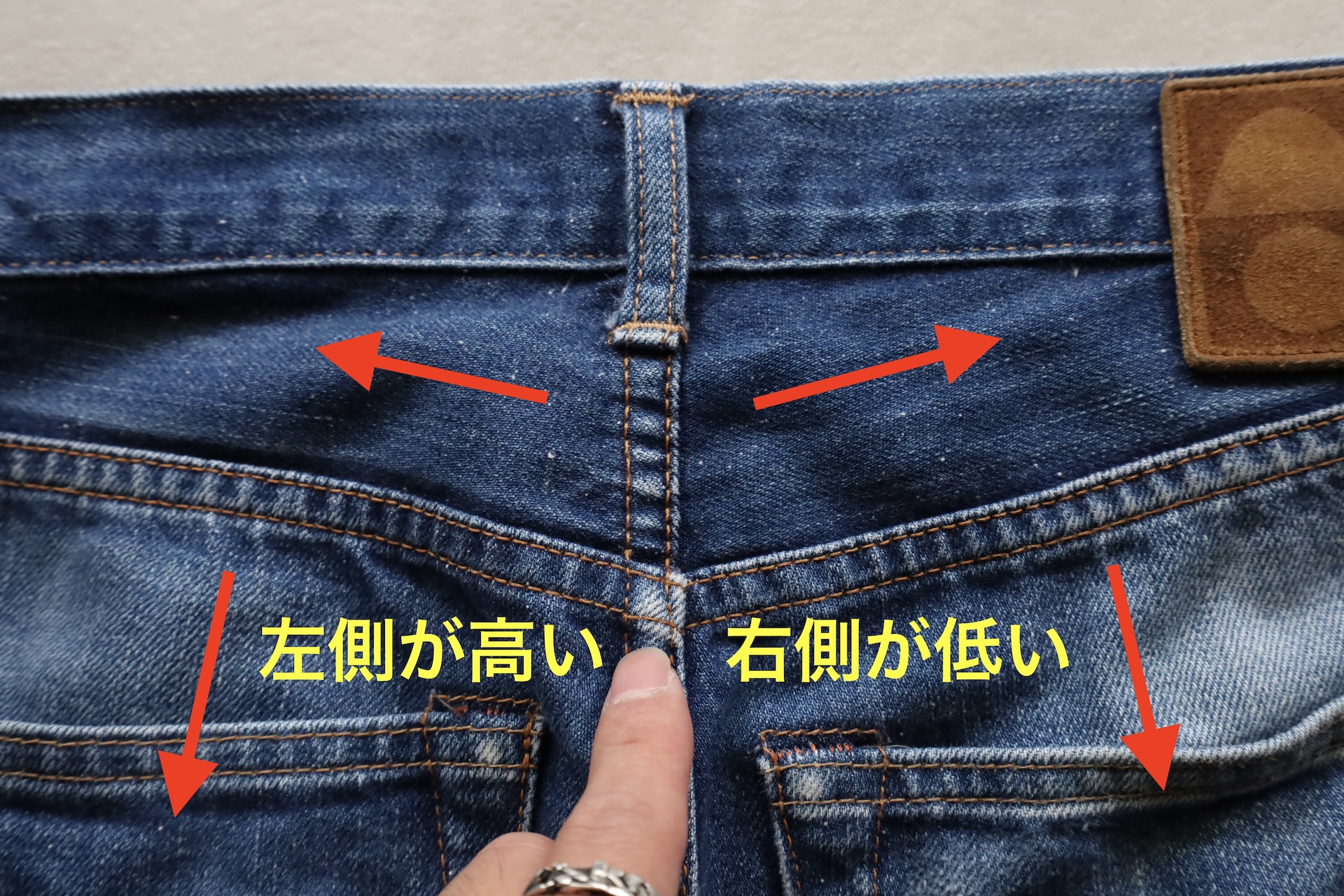 そのため、ジーンズのように完成後に身頃の高低差が生まれるということは、ほとんどないのではないでしょうか。