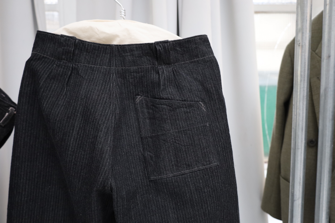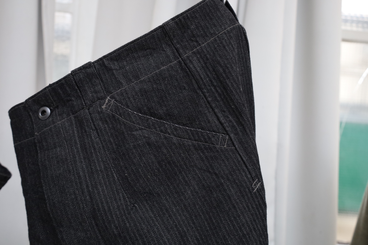 ブランドで継続して登場している細幅のヘリンボーンデニムです。