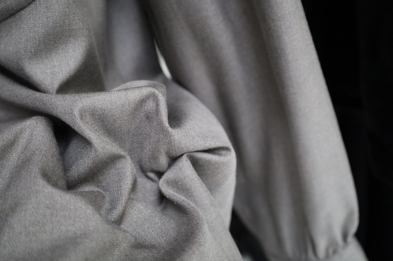 Because it’s melange—using multiple tones—the strong luster is more subdued than the corduroy, resulting in a twill fabric with a softer sheen.