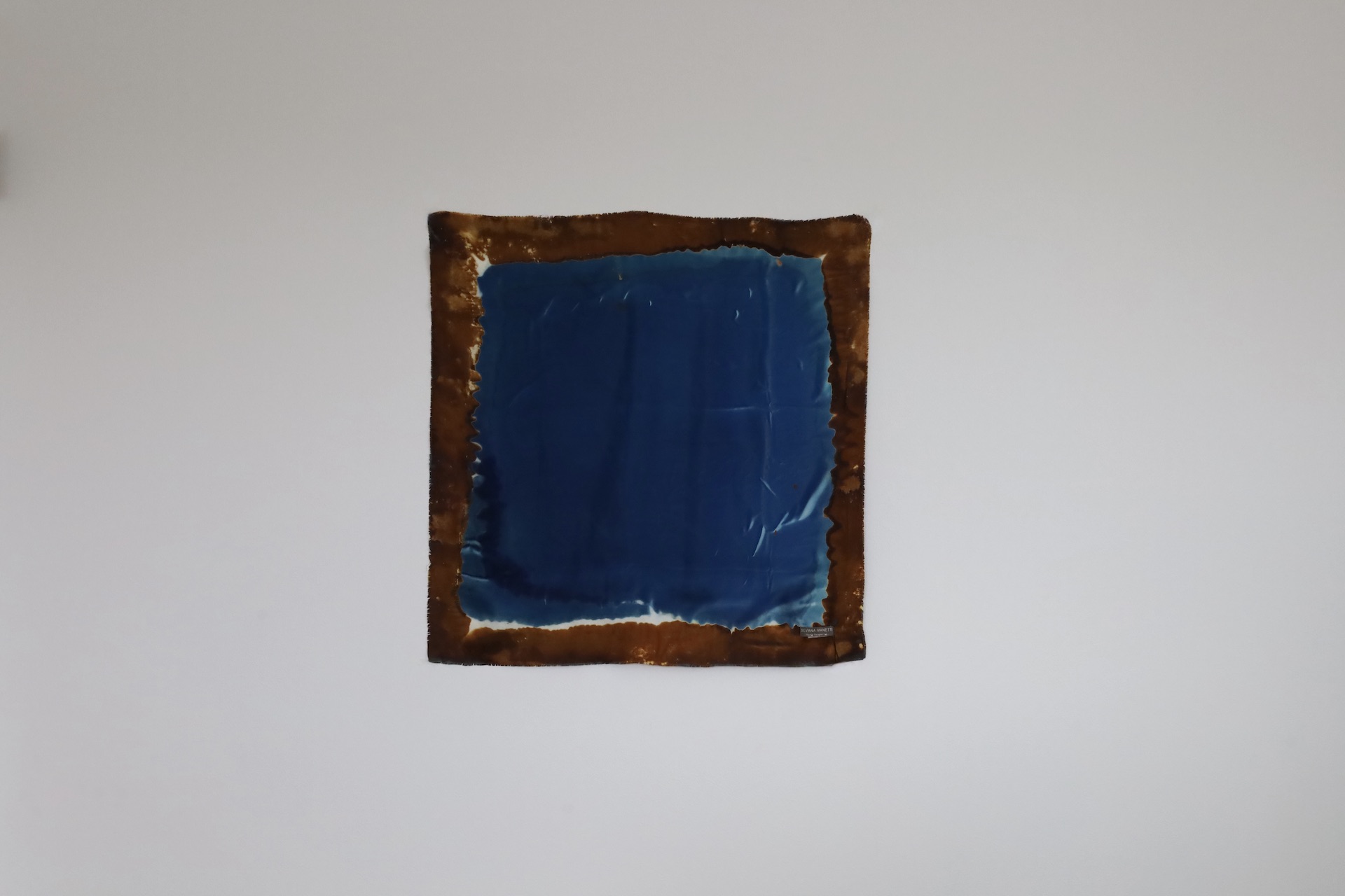 This piece likewise employs the Cyanotype technique to render its imagery.