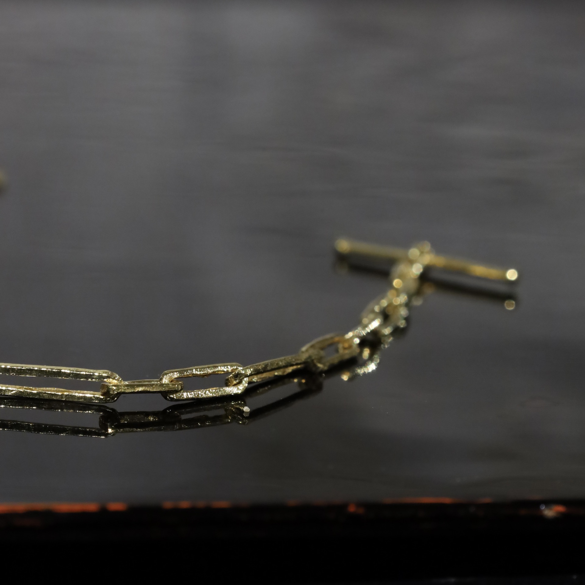Each 24K link is delicate and slightly irregular, its surface intentionally left unpolished to retain a gentle, diffused glow.