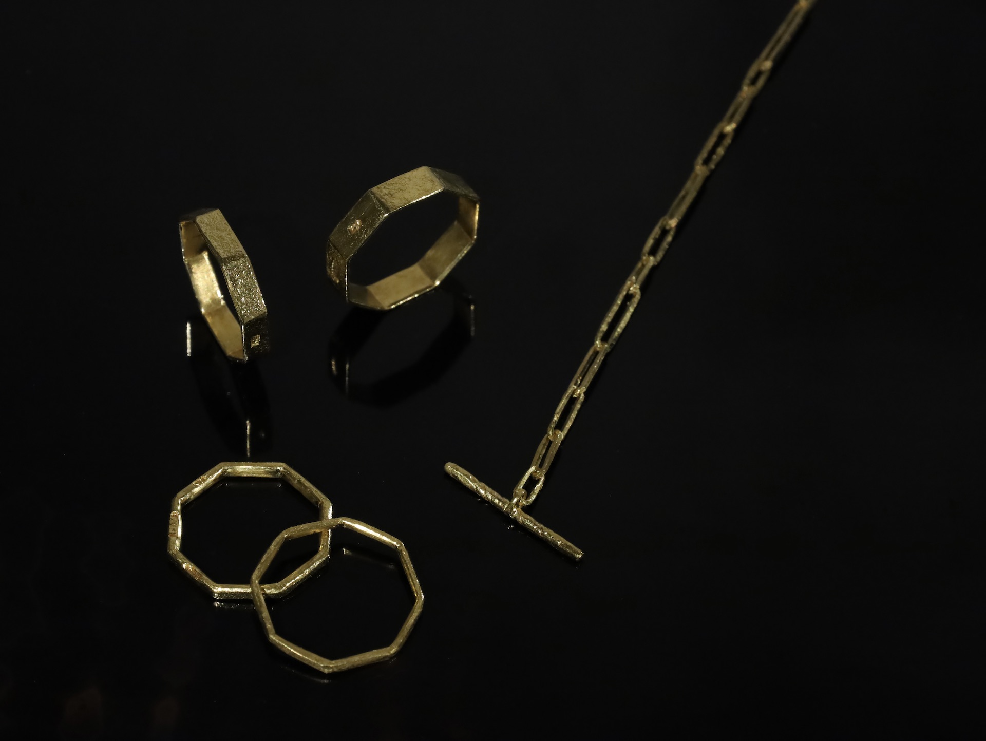 Each piece is handcrafted by Daisuke Motoike in his own atelier, using primarily 24K pure gold and SV999 pure silver—metals chosen for their unalloyed beauty and timeless presence.
