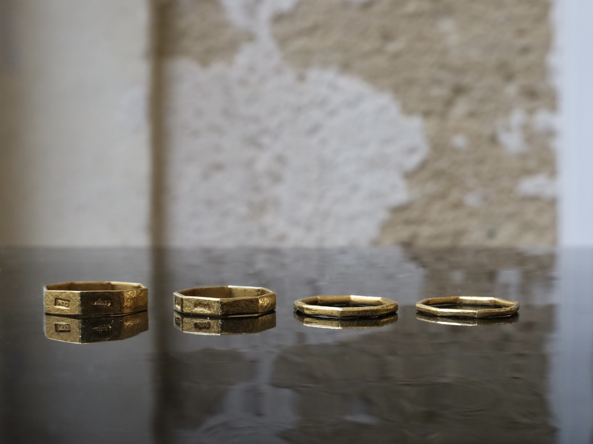 いくつか幅がありますが、その幅によっては面ができ、純金へ光が沈み込む様子がとても美しく感じられます。